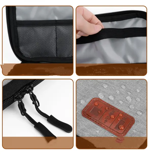 Večnamenska zasnova: torba ima več predelkov in elastičnih trakov, kar vam omogoča organiziranje in shranjevanje različnih digitalnih pripomočkov, vključno z napajalniki, kabli, polnilci in drugim.