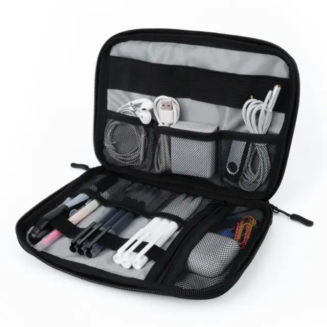 Vsestranska uporaba: Primerno za shranjevanje in organiziranje elektronskih pripomočkov, kot so napajalniki, USB kabli, polnilniki, slušalke in drugi majhni predmeti.