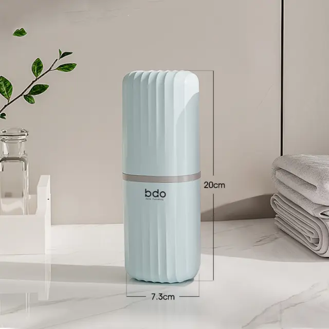 Kompaktno in prenosno: Ta potovalna skodelica za zobno ščetko je zasnovana z mislijo na prenosljivost. Zaradi svoje kompaktne velikosti in lahke konstrukcije jo je enostavno spraviti v prtljago, nahrbtnik ali celo torbico. Poenostavljena zasnova povečuje učinkovitost prostora, kar vam omogoča, da spakirate več potrebščin, ne da bi žrtvovali dragocen prostor. Vzemite svojo rutino ustne higiene na pot s tem priročnim in prostorsko varčnim potovalnim spremljevalcem, ki zagotavlja svež in samozavesten nasmeh, kamorkoli greste.