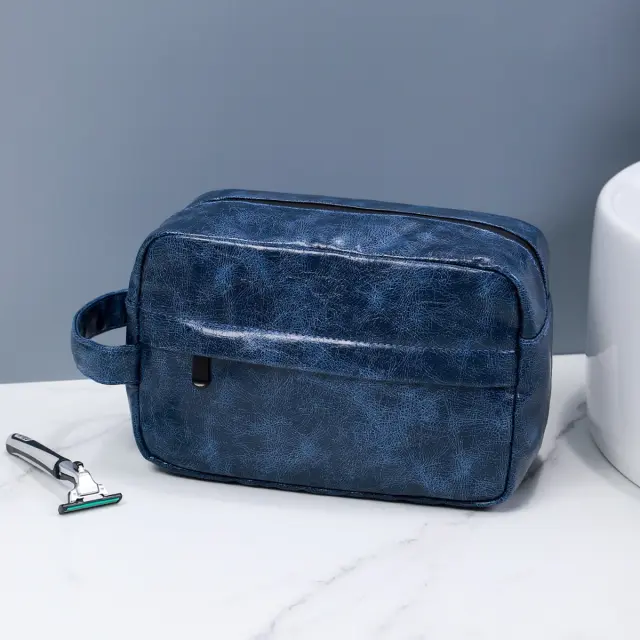 Vodoodporen material: Ta moška potovalna torbica za toaletne potrebščine je izdelana iz visokokakovostnega PU usnja in nudi izjemno vodoodpornost. Material učinkovito preprečuje vdor vode in ščiti vaše dragocenosti pred vlago in razlitji. Ne glede na to, ali jo uporabljate v vlažni kopalnici ali jo po nesreči poškropite z vodo, lahko zaupate, da bodo vaše toaletne potrebščine ostale varne in suhe. Ta vodoodporna torbica za toaletne potrebščine omogoča tudi enostavno čiščenje – preprosto jo obrišite z vlažno krpo.