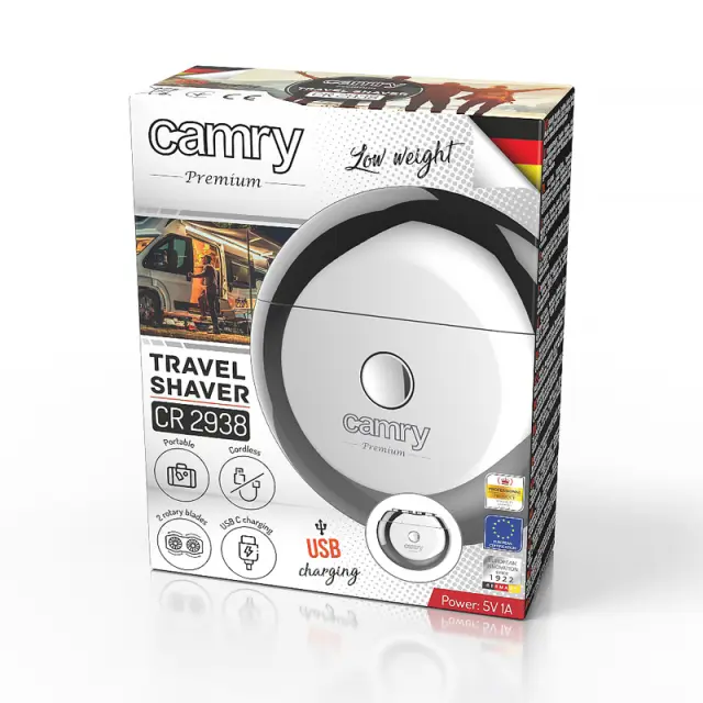 Potovalni brivnik Camry CR 2938 je praktična rešitev, ki jo bo cenil vsak moški, ki mu je mar za lep videz, udobje in minimalizacijo časa za jutranje priprave na začetek dneva. Izdelek izstopa zaradi zanimivega dizajna, preprostih, a elegantnih linij in izvirne barve. Potovalni brivnik zlahka pospravite v moško kozmetično torbico, potovalno torbo ali kovček. Naprava je opremljena z 250 mAh litij-ionsko baterijo, ki omogoča daljšo uporabo brez pogostega polnjenja.