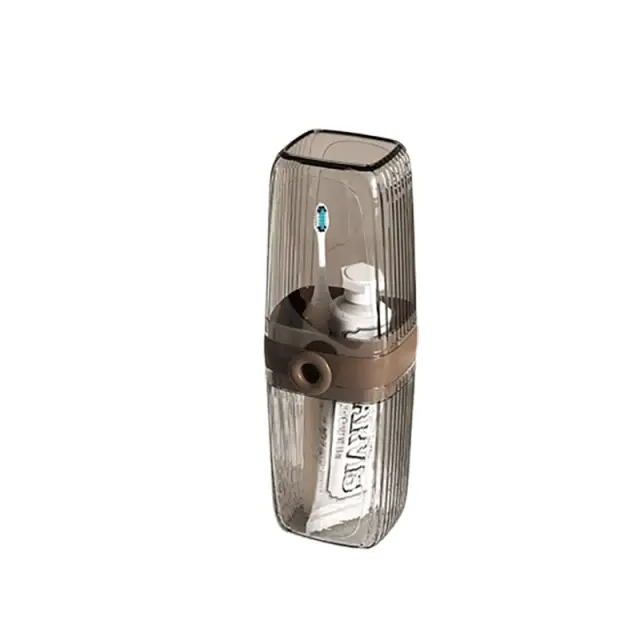 Neprepustna zasnova: Ta kozarec za zobno ščetko z dvoslojno, neprepustno zasnovo preprečuje razlitja in nered v vaši torbi. Varno tesnilo zagotavlja, da tekočine ostanejo zaprte in ščitijo vaše stvari pred poškodbami. Ne glede na to, ali potujete z letalom, vlakom ali avtomobilom, lahko zaupate, da bo ta kozarec za zobno ščetko ohranil vaše potrebščine varne in suhe. Robustna konstrukcija zagotavlja dodatno zaščito pred nenamernimi udarci in padci.