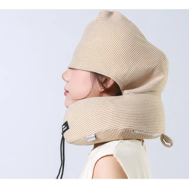 Potovalni vzglavnik z U-obliko in kapuco za blokiranje svetlobe - udoben in prenosen coffee