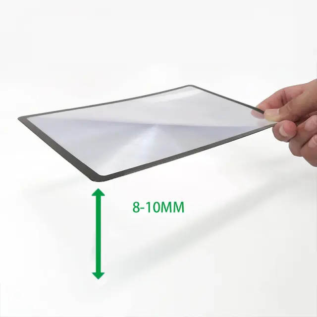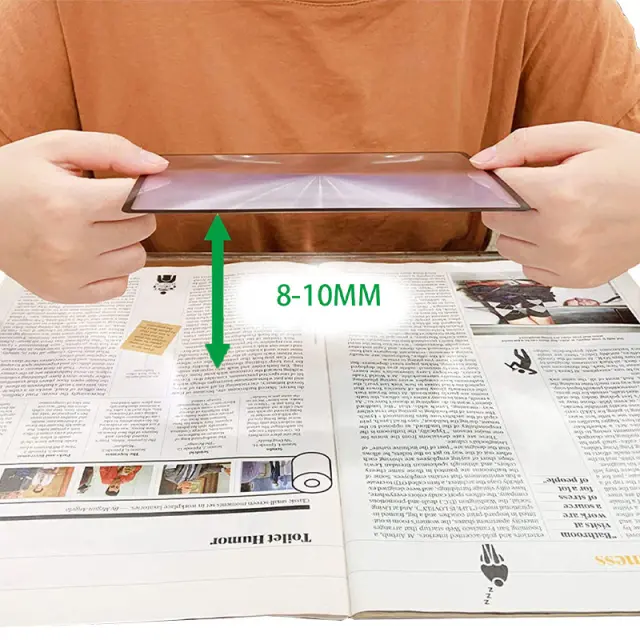 Izjemno tanek in prenosljiv: povečevalna plošča je debela le 0,1 cm in je neverjetno lahka. Vstavite ga v knjigo ali revijo za priročno uporabo na poti.
