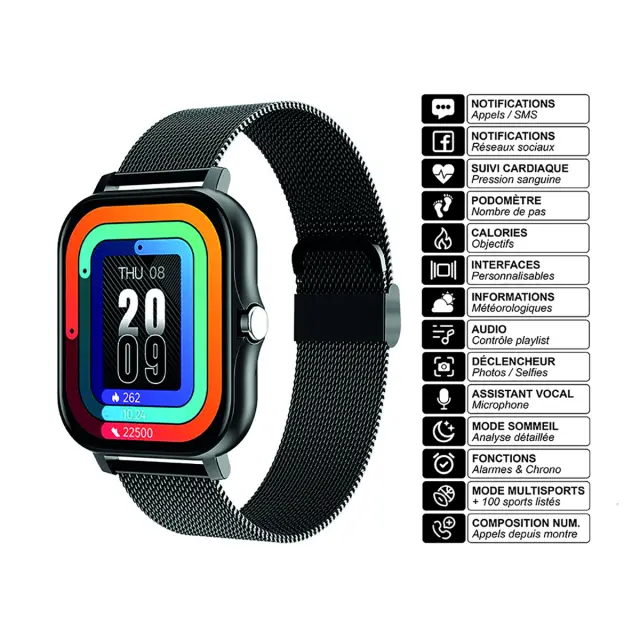 Z uro Balnéo lahko kličete in sprejemate klice neposredno z zapestja. 1,69-palčni zaslon na dotik prikazuje vaše zdravstvene podatke in obvestila v kristalno jasnih podrobnostih. Milanska jeklena zapestnica dodaja eleganten slog in optimalno udobje pri uporabi. Vgrajeni senzor srčnega utripa neprekinjeno spremlja vaš srčni utrip in raven kisika v krvi..