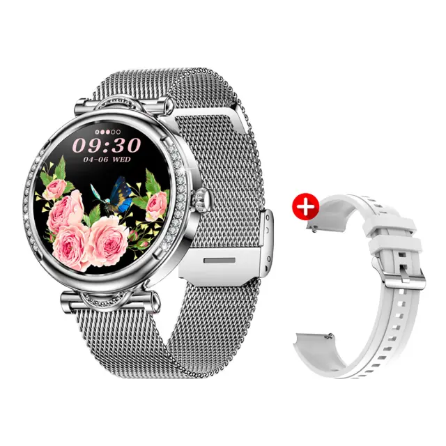 Povezana ura Plaza s klicem Strass Dial in sledilnikom zdravja, Srebrna