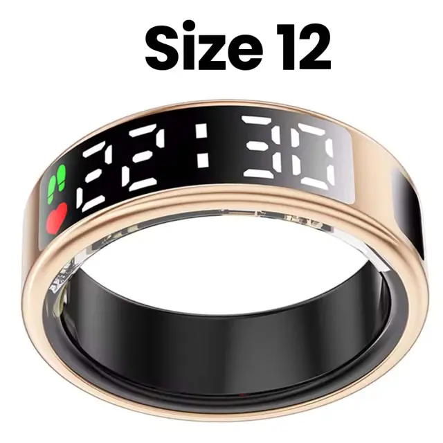 Povezani prstan velikosti 12, model Saturn, z LED zaslonom in polnilnim etuijem, Črna