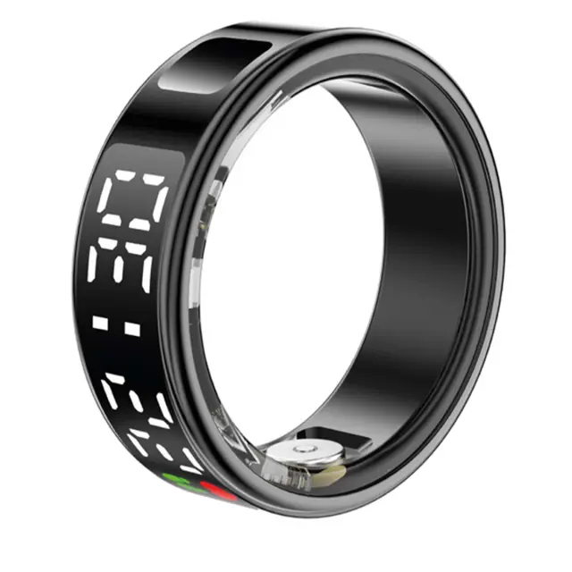 Povezani prstan velikosti 8, model Saturn z LED zaslonom in polnilnim etuijem, Črna