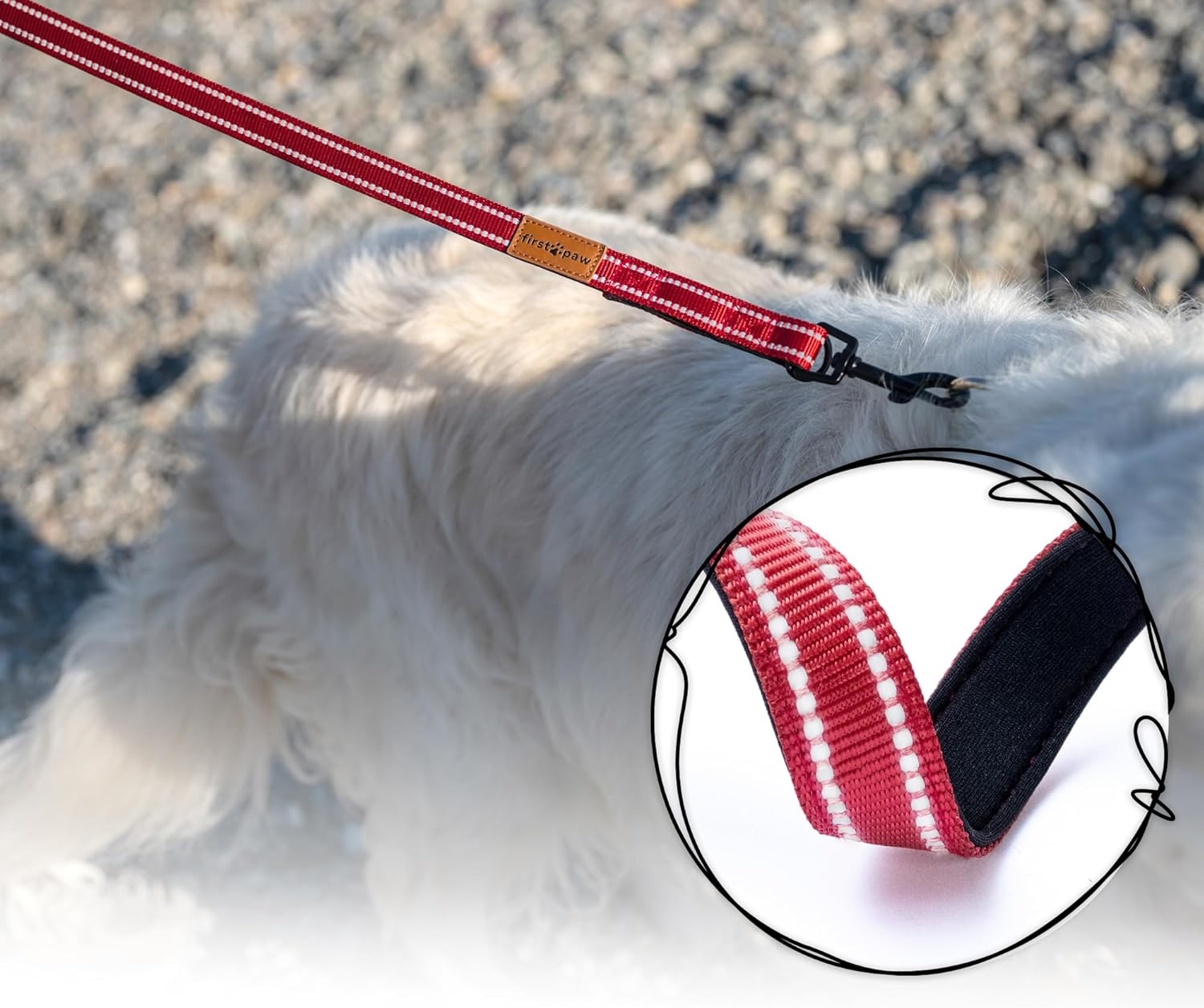 Povodec blagovne znamke FIRSTPAW predstavlja vsestransko rešitev za lastnike psov vseh velikosti, saj je zasnovan za majhne, srednje in velike pasme. Izdelan je iz trpežnega PP traku, ki zagotavlja dolgotrajno vzdržljivost in zanesljivo uporabo v različnih vremenskih razmerah. Brezšivni šivi v kombinaciji z mehko oblazinjenim ročajem poskrbijo, da je povodec izjemno trden, hkrati pa nudi visoko stopnjo udobja med vsakodnevno uporabo. Njegova premišljena zasnova omogoča preprosto upravljanje psa med sprehodi, treningi ali rekreativnim tekom na prostem.