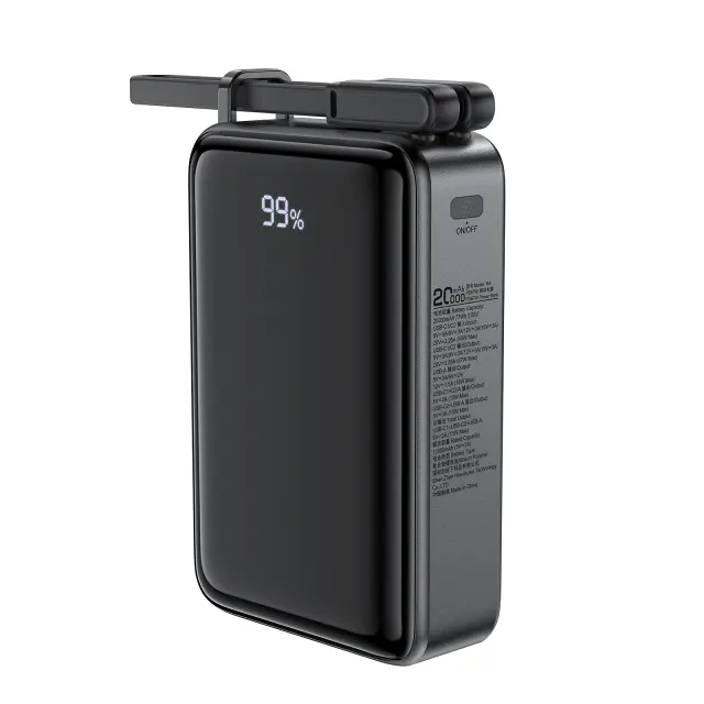 Powerbank 20000mAh M4 PD 67W z vgrajenim kablom USB-C, črna