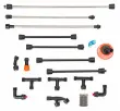 Kompleksen nabor razpršilnih komponent, kot so sulice, podaljški, konektorji, šobe in tesnila, vam bo omogočil, da sestavite zelo priročen razpršilni sistem, prilagojen vašim potrebam, da: