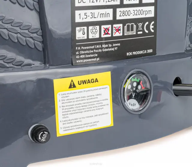 Za zagotavljanje zavedanja o stanju napolnjenosti baterije je škropilnica opremljena z LED diodami , ki svetijo v 3 barvah in nam sporočajo, koliko dela je še ostalo, dokler se baterija ne izprazni do nič.