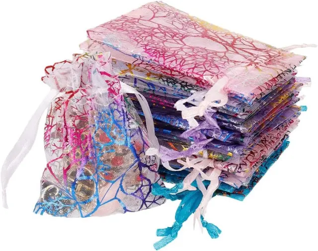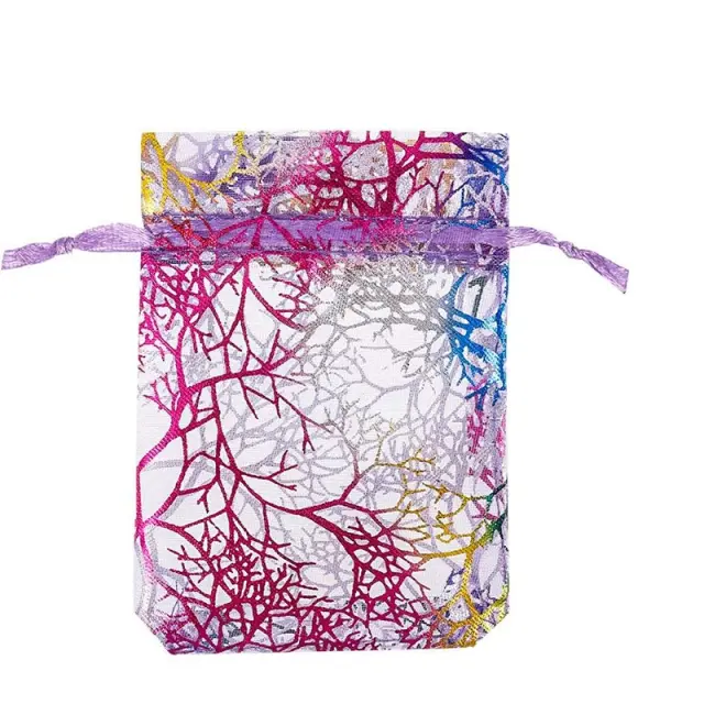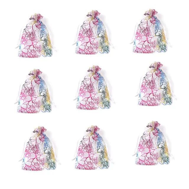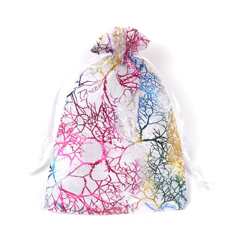 Pozlačene mavrične vrečke iz organze s koralnim vzorcem 7x9cm (100 kosov)