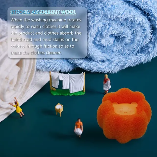 Učinkovit odstranjevalec dlake: Čistilna kroglica je izdelana iz gobastega materiala, ki učinkovito absorbira živalske dlake, niti, izbokline in kosme na oblačilih. Skozi trenje z oblačilom se naberejo dlake in podobno in dobite čista in sveža oblačila.
