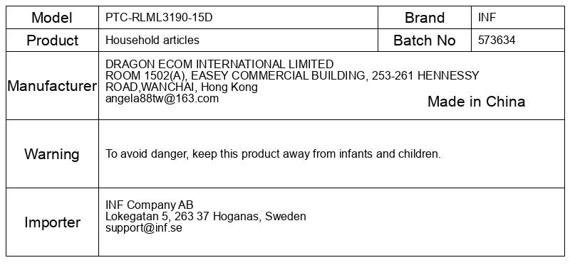 Da bi se izognili nevarnosti, hranite ta izdelek izven dosega dojenčkov in otrok.
