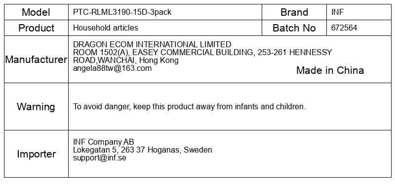 Da bi se izognili nevarnosti, hranite ta izdelek izven dosega dojenčkov in otrok.