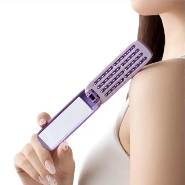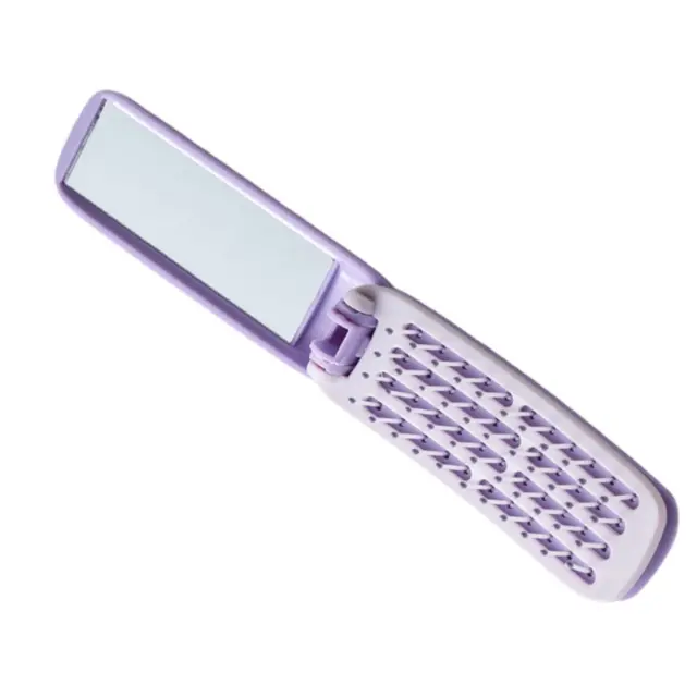 Pravokoten Zložljiv Ogledalni Glavnik - Prenosna & Samo-čistilna Krtača za Lase Purple