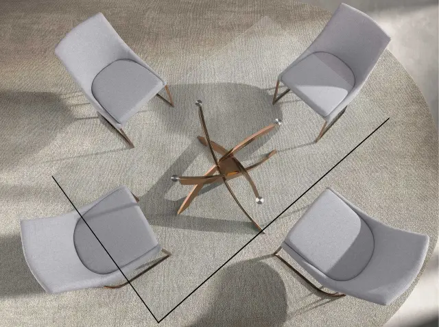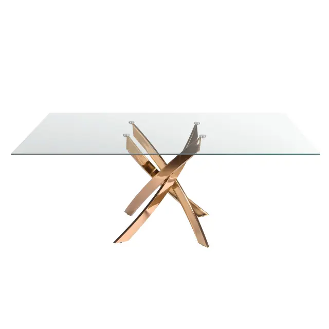 Pravokotna jedilna miza iz kaljenega stekla in roza jekla