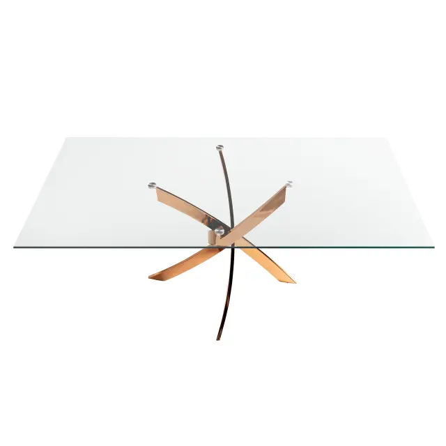 Pravokotna jedilna miza iz kaljenega stekla in roza jekla