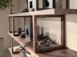 Polica sodobnega dizajna s konstrukcijo in policami iz naravnega orehovega furnirja debeline 0,5 mm.
