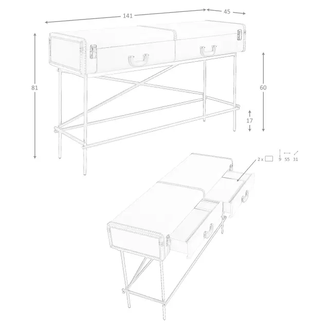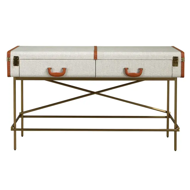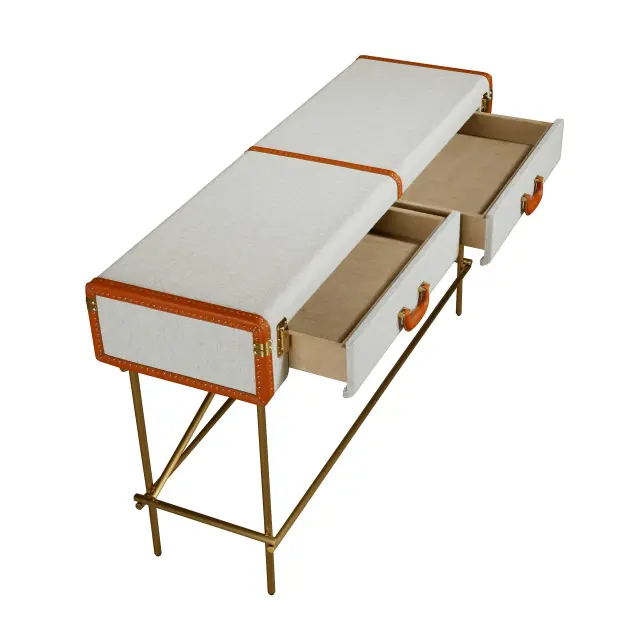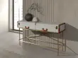 Pravokotna konzolna mizica, tkanina, oreh in zlato polirano jeklo