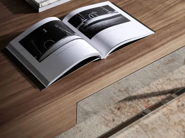 Pravokotna mizica iz orehovega lesa s predalom 2057 Angel Cerdá S.L. Moderno oblikovana mizica s fiksno pravokotno ploščo iz naravnega orehovega furnirja debeline 0,5 mm in sprednjim predalom s kromiranim zaključkom, ki se odpira s pritiskom in se mehko zapira, kar je idealno za vzdrževanje reda in urejenosti na svojem mestu. Sodoben pridih ji daje izvirna struktura nog iz 22 mikronov kromiranega nerjavnega jekla. - STIL: Ta kavna mizica iz orehovega lesa bo postala glavni protagonist vaše dnevne sobe. - Vsestranska oblika: Zaradi svoje vsestranske zasnove se lahko prilega kateremu koli prostoru v vašem domu. - KAKOVOST: Vse naše mizice so izdelane iz najkakovostnejših materialov, kar zagotavlja trajno in funkcionalno pohištvo. - OKRASJE IN UDOBJE: Ta izvirna kavna mizica iz orehovega lesa in jekla s potisnim predalom in mehkim zapiranjem za shranjevanje je idealna za vnašanje elegance in praktičnosti v vašo dnevno sobo. - MERE: Zaradi svojih dimenzij bo ta moderno oblikovana mizica idealen kos za popestritev vaše dnevne sobe, hkrati pa bo tudi eleganten element za vaš dom