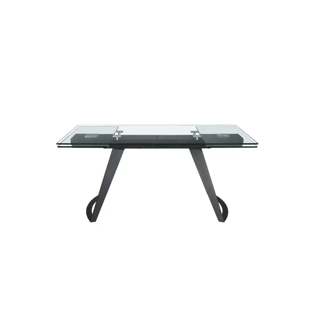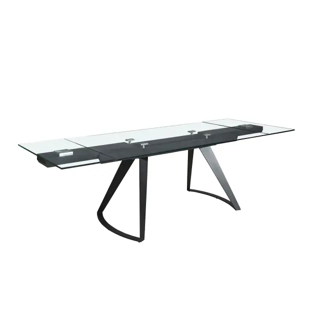 Pravokotna raztegljiva jedilna miza iz kaljenega stekla in črnega jekla