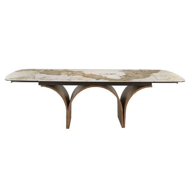 Pravokotna raztegljiva jedilna miza iz porcelanastega marmorja in jekla z učinkom oreha