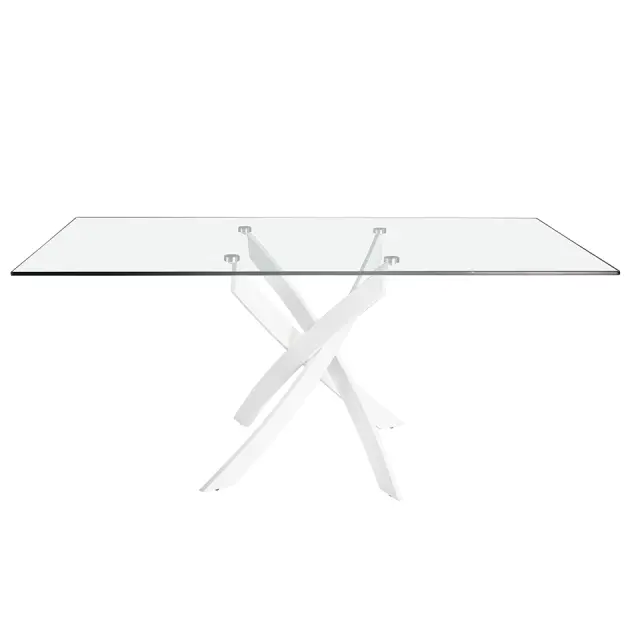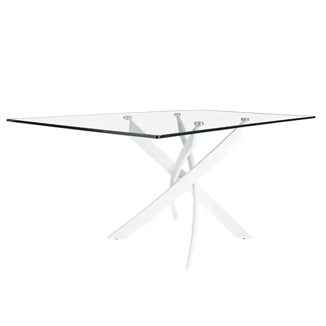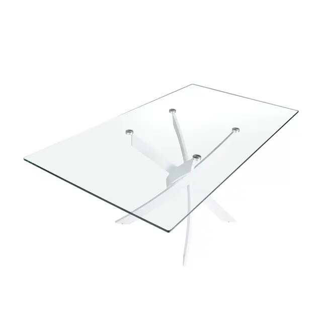 Pravokotna steklena jedilna miza model 1138 Angel Cerdá S.L. Pravokotna jedilna miza sodobne oblike s fiksno 12-milimetrsko ploščo iz kaljenega stekla in poliranimi robovi. Njene originalno belo lakirane ukrivljene jeklene noge so eden ključnih elementov, ki poudarjajo njeno zasnovo. Popolna miza, ki v vašo kuhinjo, dnevno sobo ali jedilnico vnese svetlost in avantgardnost. - STIL: Moderna oblikovna obdelava te jedilne mize je idealna za kombiniranje z najnovejšimi trendi v dekoraciji. - Vsestranska in funkcionalna: Njena pravokotna steklena plošča ponuja občutek prostornosti in svetlobe, ki ga iščete v svojem domu. - KAKOVOST: Vsi naši izdelki so izdelani iz materialov najvišje kakovosti, kar je zagotovilo za trajno in funkcionalno pohištvo. - DEKORACIJA IN UDOBJE: Zaradi kombinacije stekla in belega jekla je ta izvirna jedilna miza odličen element, s katerim boste v vsako svojo sobo prenesli svoj značaj in avantgardno osebnost. - MERE: To jedilno mizo lahko najdete v različnih velikostih, zato lahko izberete tisto, ki najbolj ustreza vašim potrebam.