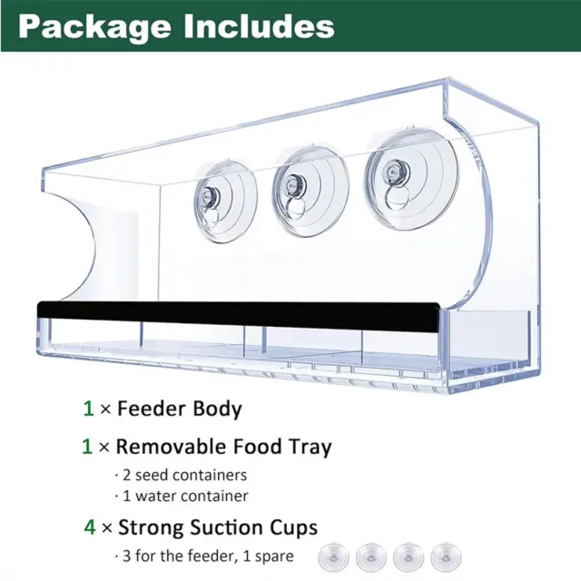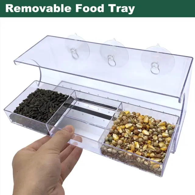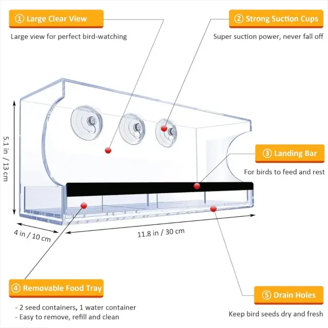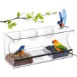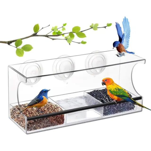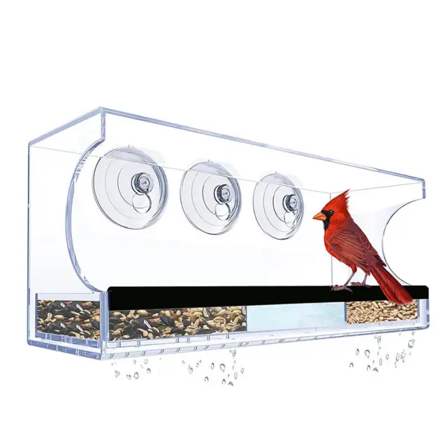 Pravokotni podajalnik za ptice: Kristalno čist akril z močnimi priseski