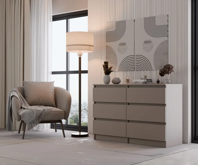 Odkrijte moderno komodo M6 120 iz serije MALWA, ki se popolnoma prilega v najnovejši trendi notranje opreme. Ta funkcionalen in prostoren kos pohištva bo okrasil notranjost vaše spalnice, dnevne ali otroške sobe in ji dodal edinstven značaj.