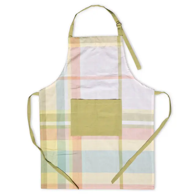 Kuhinjski predpasnik s klasičnim škotskim vzorcem v nežnih pomladanskih pastelnih barvah združuje brezčasen stil in praktičnost. Sveža barvna kombinacija prinaša pridih lahkotnosti in topline v vsako kuhinjo ter popestri vsakodnevna kulinarična opravila.