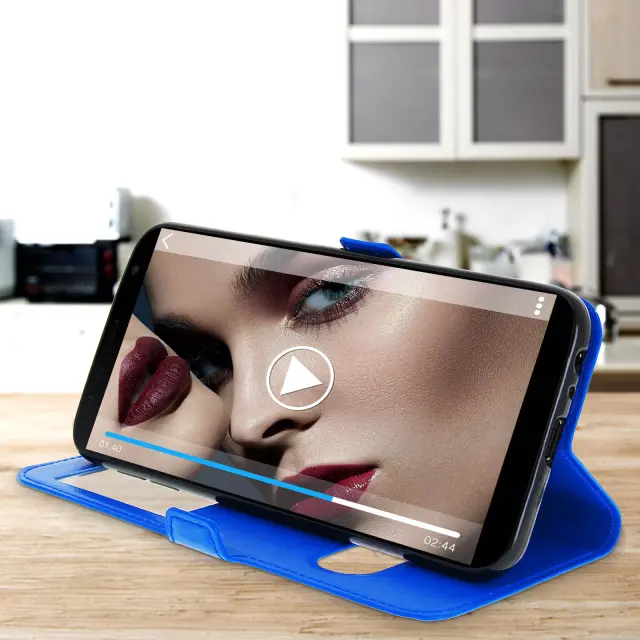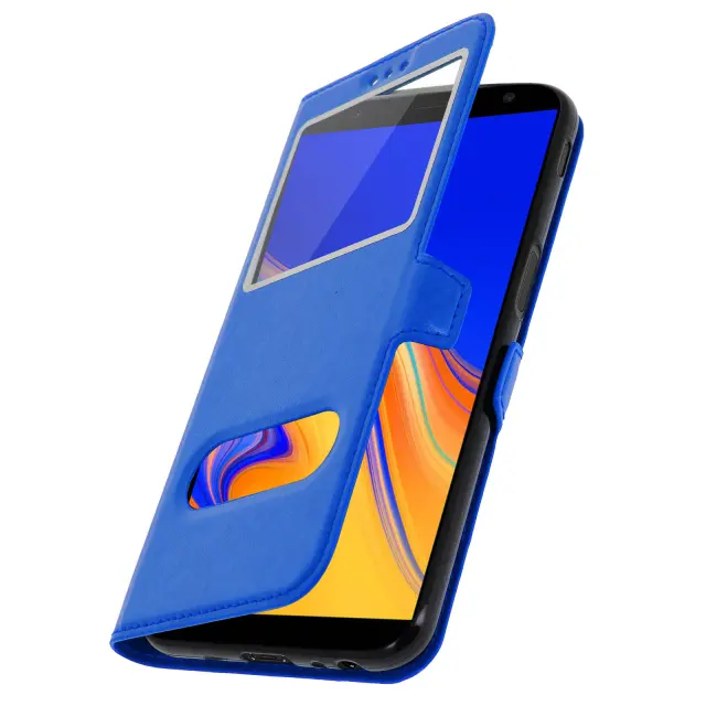 Preklopna prevleka z dvojnim oknom in stojalo za video - modra str. Samsung Galaxy J6 Plus