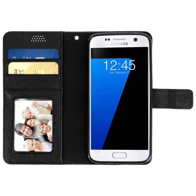Preklopna torbica denarnica, tanek ovitek za Samsung Galaxy S7, silikonsko ohišje – črna