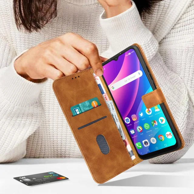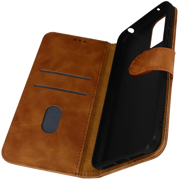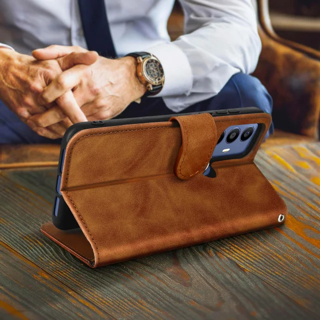 Preklopna torbica denarnica s stojalom za video - serija Vintage - rjava za TCL 30 SE, 30E in 306