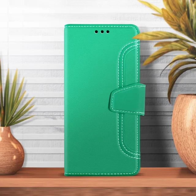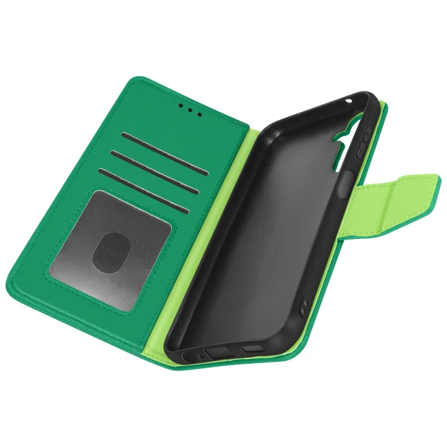 Etui iz ekološkega usnja Green Versa Cover, posebej zasnovan za Samsung Galaxy A14 4G in A14 5G. Zunanji pomnilnik za vašo kreditno kartico, osebno izkaznico, avtobusno vozovnico itd. Več predelkov v podlogi zavihka za vaše kartice in vozniško dovoljenje. Na zavihku je na voljo tudi stranski žep za vaše bankovce.