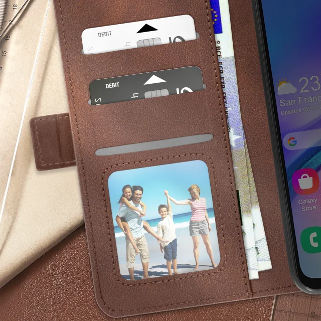 Preklopna torbica denarnica za Samsung Galaxy A05s, podpora za video - rjava