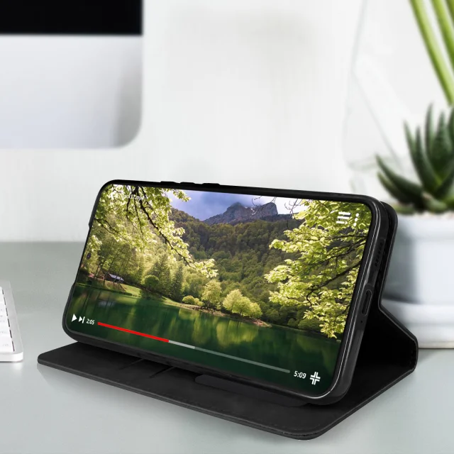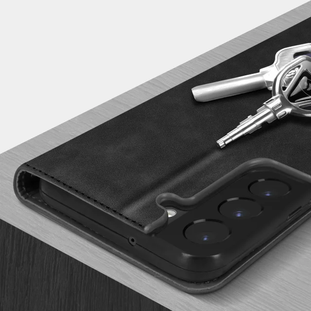 Preklopna torbica denarnica za Samsung Galaxy S22 iz suede umetnega usnja - crna