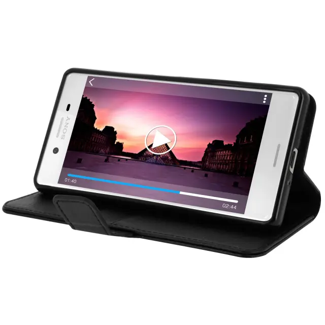 Zrnata torbica za Sony Xperia X. Stranski žep z režami za shranjevanje kartic in vstopnic. Udobno gledanje fotografij/videoposnetkov zahvaljujoč vgrajeni podporni funkciji. Popolna zaščita z magnetnim jezičkom.