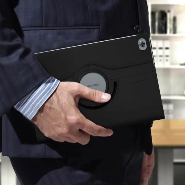 Preklopna torbica Huawei MediaPad M5 Lite 360° vrtljivo stojalo, pokoncno / ležece - crna