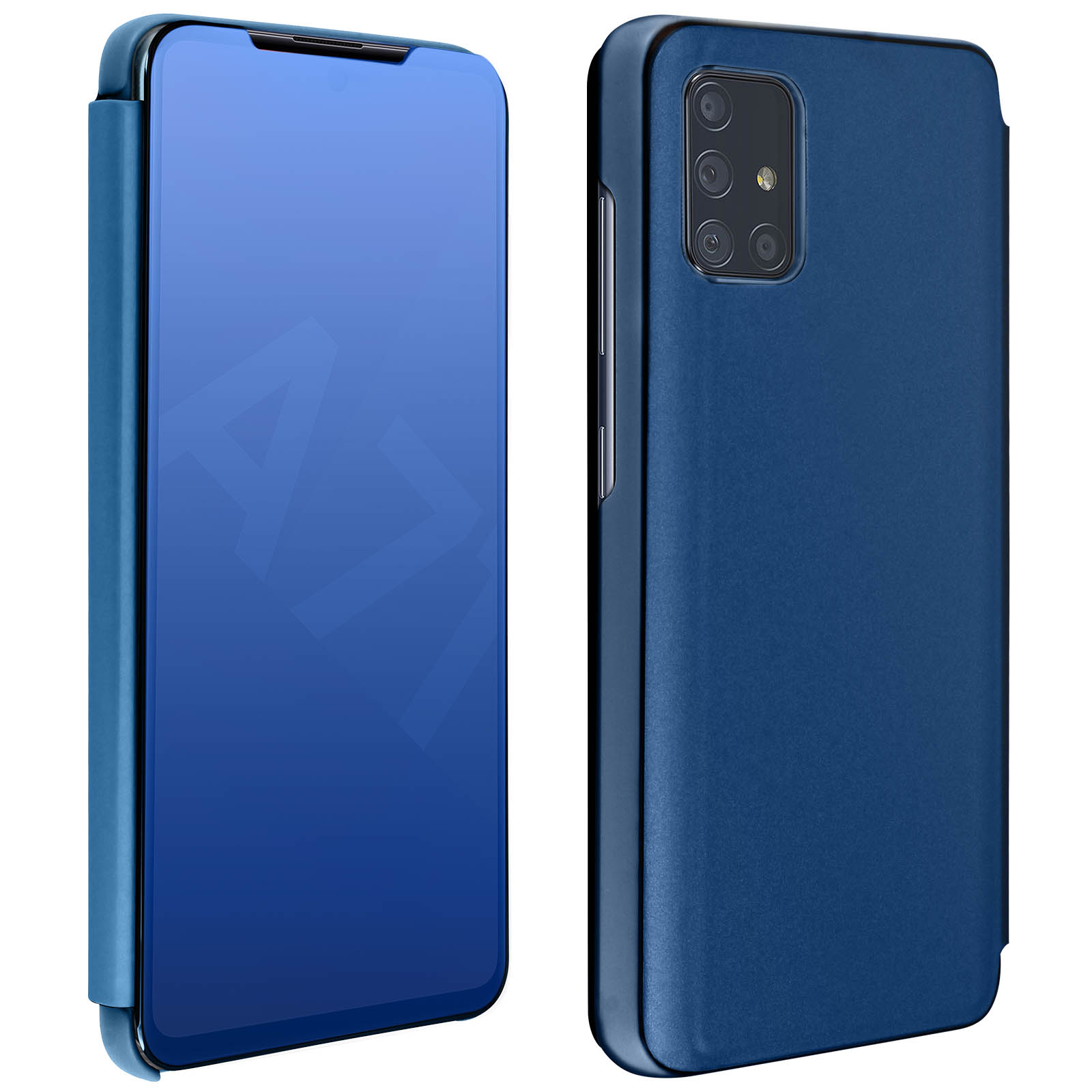Preklopna torbica s stojalom za Samsung Galaxy A71 z ucinkom ogledala - temno modra