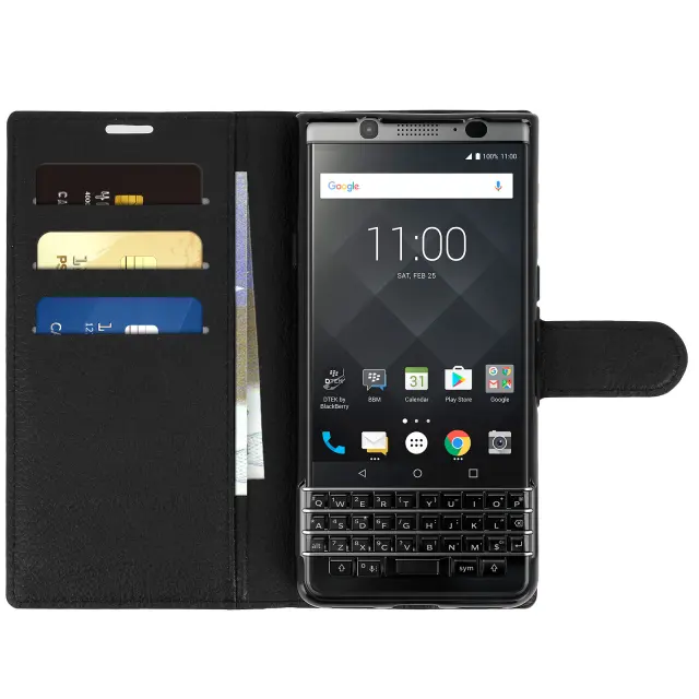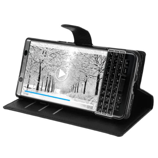 Preklopna torbica, tanek ovitek za BlackBerry Keyone, silikonsko ohišje – črna