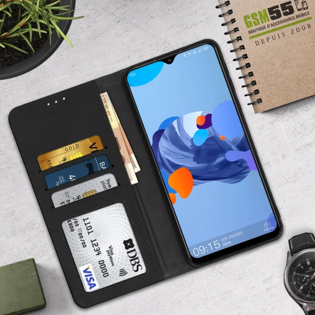 Preklopna torbica z magnetno denarnico Oukitel C19, funkcija stojala - crna