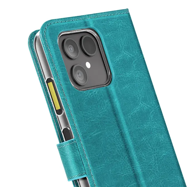 Preklopna torbica za Fairphone 6 z vgrajenim držalom za kartice in video stojalom, Turkizna