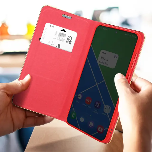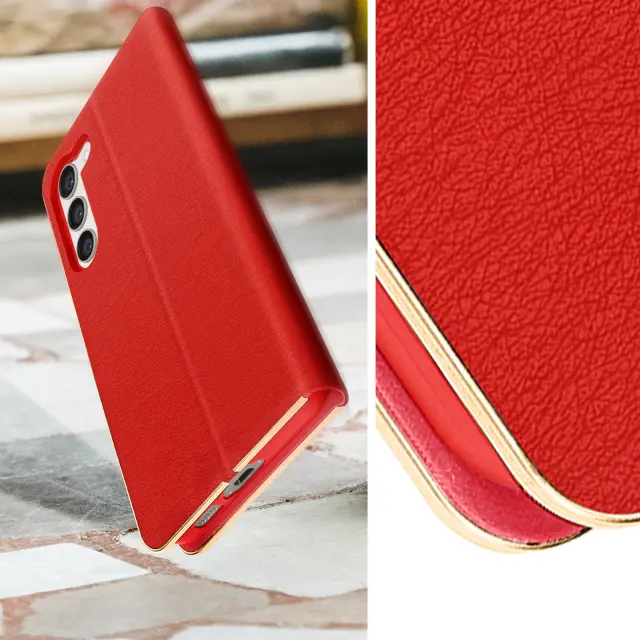 Preklopna torbica za Samsung S23 Plus z magnetnim preklopom in video stojalom - rdeca