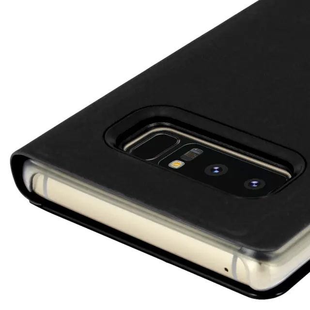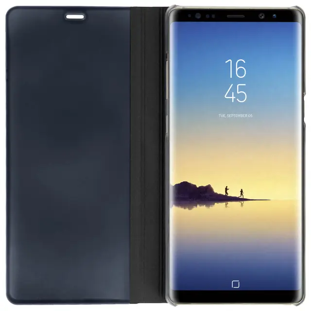 Folio Cover Clear View, zasnovan za Galaxy Note 8. Zasnova z zrcalnim učinkom, ki daje mobilnemu telefonu edinstven videz. Prosojna loputa, ki pusti zaslon viden, ko zasveti. Funkcija podpore za udobno gledanje videoposnetkov.