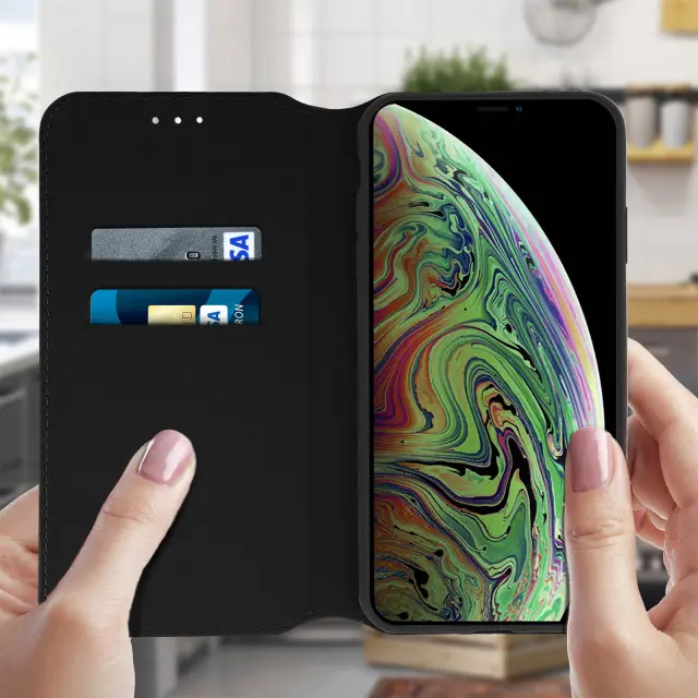 Preklopni ovitek za knjigo Držalo za kartico in podpora za video - crna str. Apple iPhone XS MAX