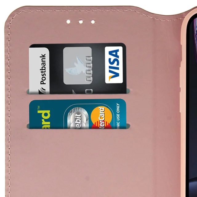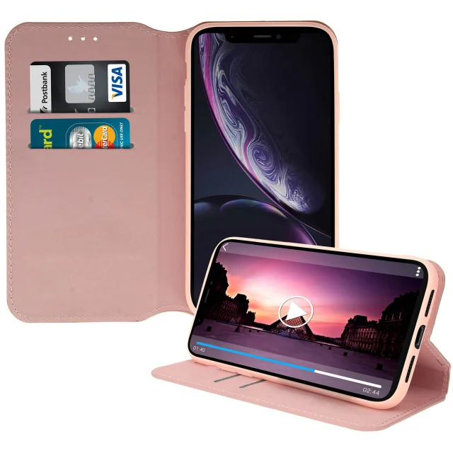 Preklopni ovitek za knjigo Držalo za kartice in podpora za video - rožnato zlato str. Apple iPhone XR