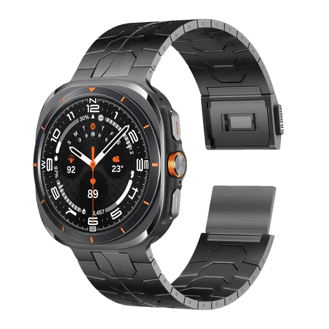 Varno magnetno zapiranje: Izkusite neprimerljivo varnost z našim inovativnim magnetnim zapiranjem. Ta zasnova zagotavlja, da vaš Samsung Galaxy Watch 7 ostane trdno na mestu, kar zagotavlja brezskrbnost med katero koli aktivnostjo. Močna magnetna zaponka je enostavno nastavljiva, kar omogoča popolno prileganje na katero koli velikost zapestja. Uživajte v priročnosti enostavnih prilagoditev in zanesljivem oprijemu, zaradi česar je idealen trak za Galaxy Watch 7 za vaš aktiven življenjski slog.