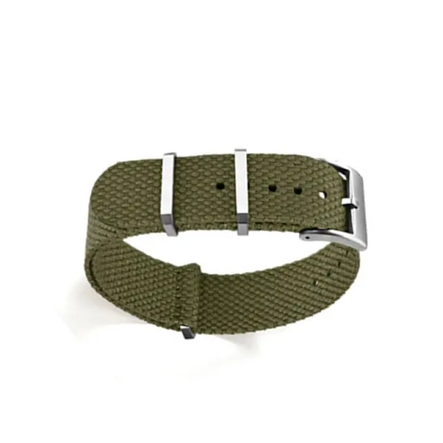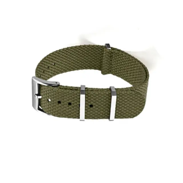 Vzdržljivost vojaškega razreda: Naš vojaški pašček za uro, izdelan tako, da prenese vsakodnevno obrabo, je izdelan iz robustnega najlona. Ta pašček za uro je zasnovan za dolgo življenjsko dobo, saj je odporen proti obrabi in zagotavlja, da ostane zanesljiv spremljevalec vaše ure. Ojačani šivi in trpežna zaponka zagotavljajo dodatno varnost, zaradi česar je primeren za pustolovščine na prostem in zahtevna okolja. Resnično univerzalen pašček za uro.